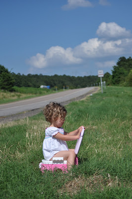 OMGosh! How cute! good girl Miss Piper! Way to keep mama on her toes! There is nothing like stopping in the middle of nowhere to have a kid go pee. LOL