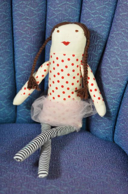 A little hand sewn Tuesday doll, complete with tutu, that I whipped up while taking muscle relaxers. (I threw my back out, I’m not taking them just for fun. Or am I?)